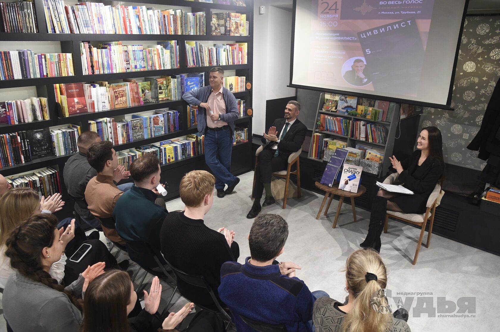 24 ноября 2025 года главный редактор Альберт Тумаков и редакционная команда журнала встретились со своими читателями на площадке книжного магазина «Во весь голос». Модератором выступила член редакционной коллегии журнала «Цивилист», доцент кафедры гражданского и трудового, гражданского процесса Московского университета МВД России имени В.Я. Кикотя, к.ю.н. Наталия Малышева.