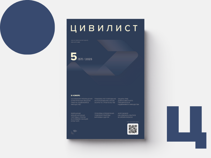 На страницах пятого выпуска журнала «Цивилист» за 2025 год опубликованы материалы в рубриках «Экспертное мнение», «Актуальные проблемы частного права», «Международная правоприменительная практика» и «Трибуна молодого ученого».